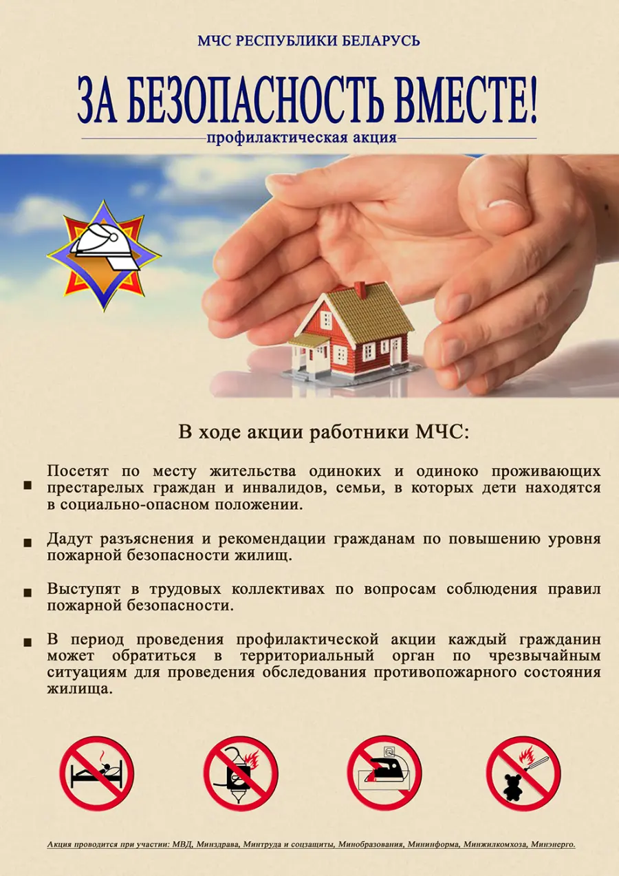 В целях повышения уровня культуры безопасности среди населения Министерством по чрезвычайным ситуациям в период с 25 октября по 2 ноября организовано проведение уже ставшей традиционной республиканской пожарно-профилактической акции по предупреждению пожаров и гибели людей от них в жилищном фонде "За безопасность вместе".